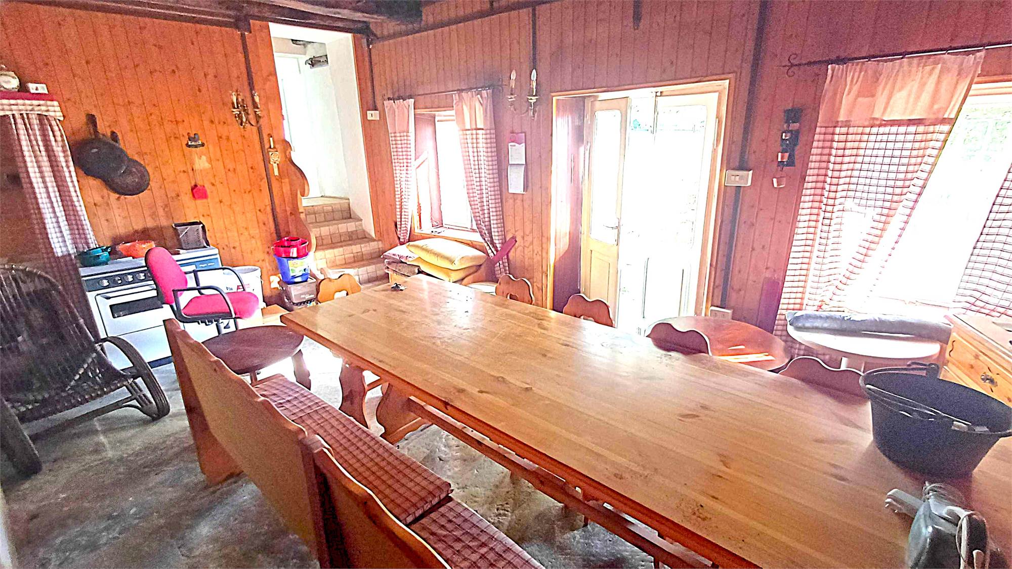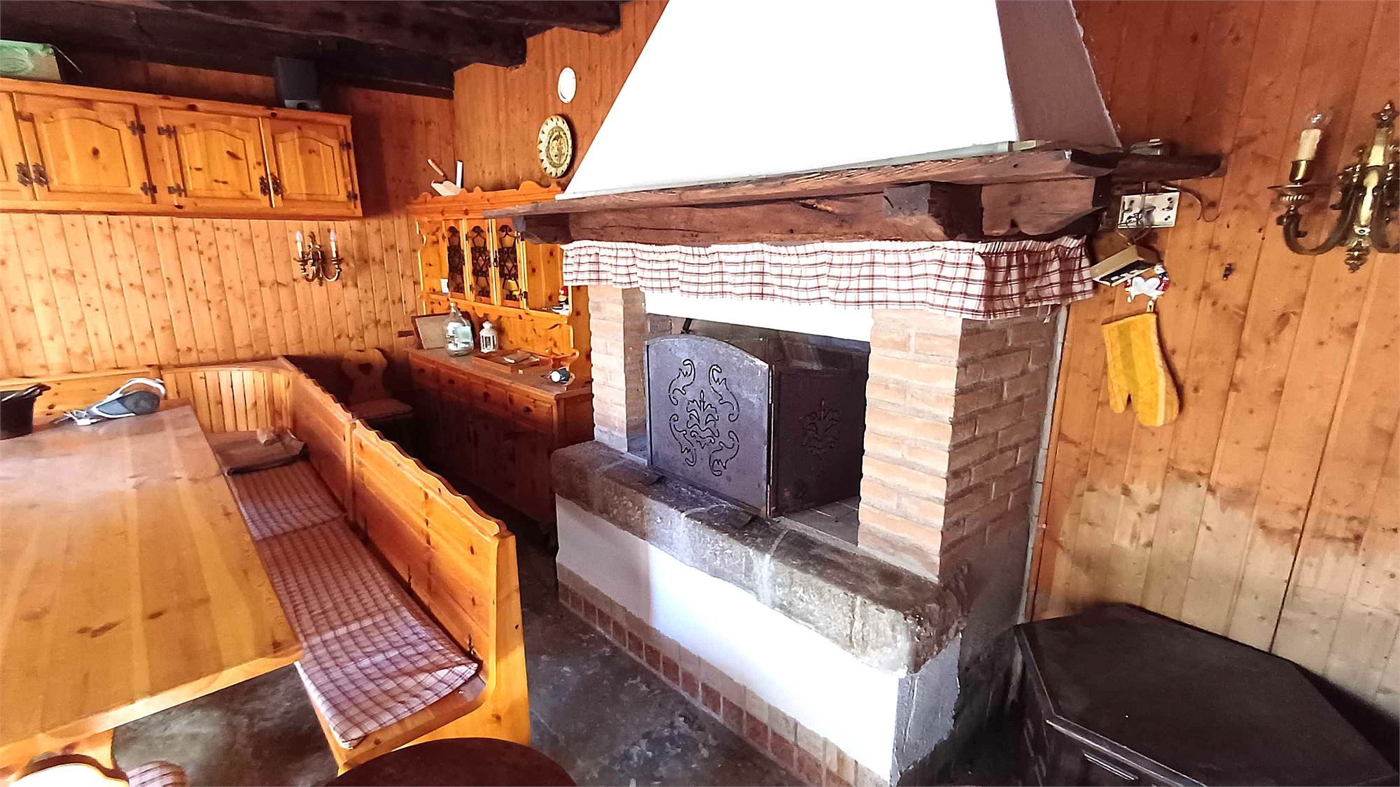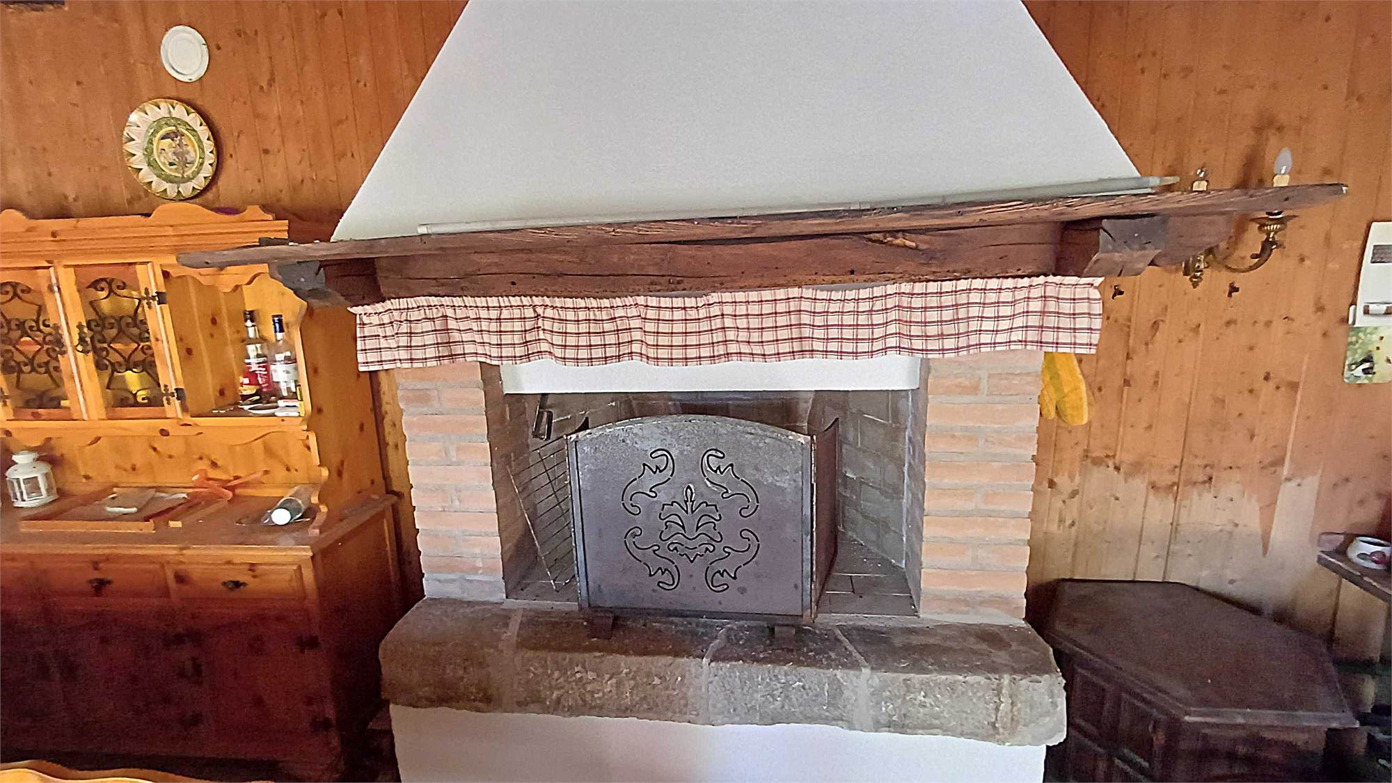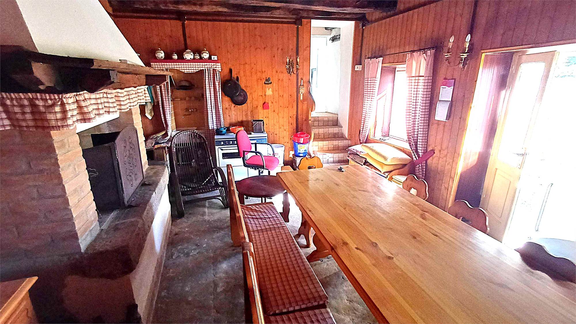 Piano terra: zona giorno con grande caminetto, bagno e ripostiglio;
